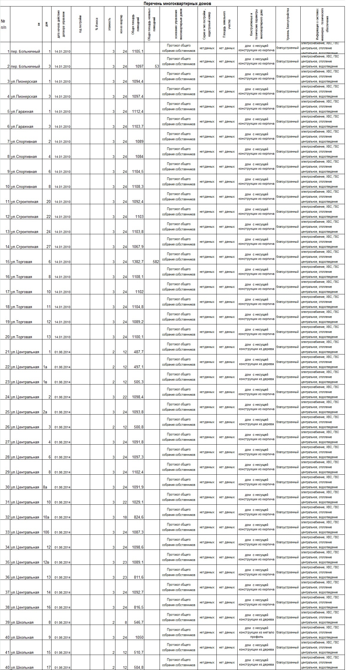 | № | Улица/Переулок | Дом/Строение | Площадь |