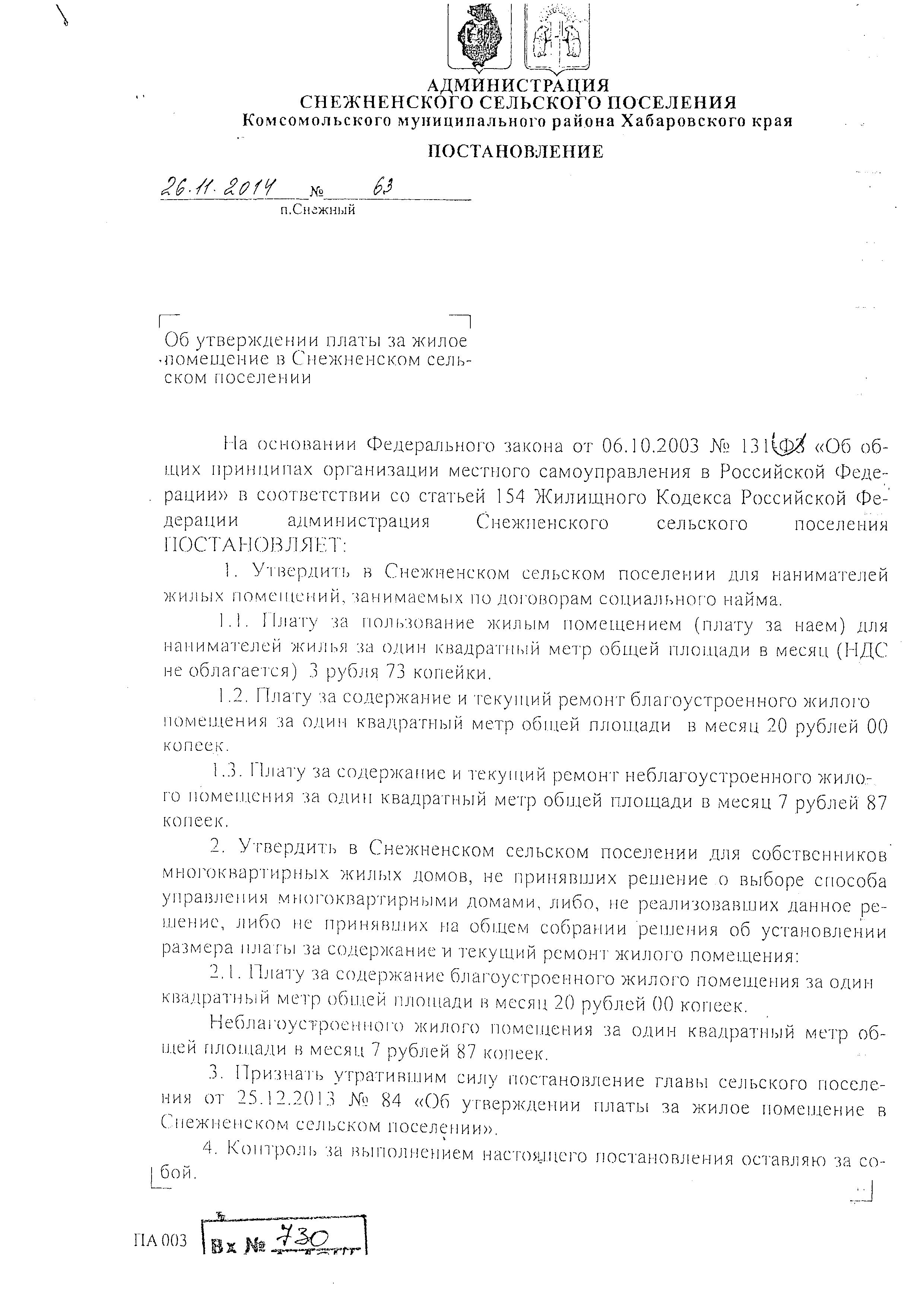 Об утверждении платы за жилое помещение в Снежненском поселении (от 26.11.2014 г) Подробности Автор: Super User