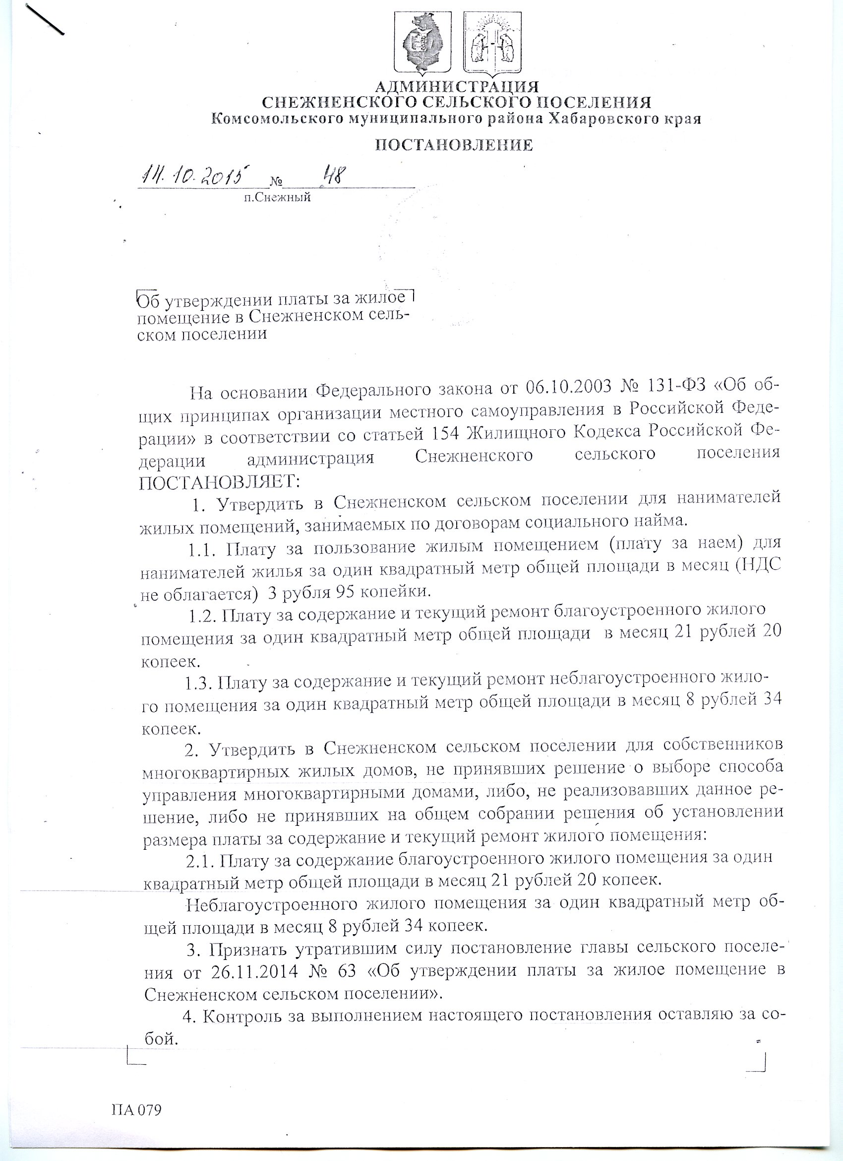 Об утверждении платы за жилое помещение в Снежненском поселении (от 14.10.2015 г) Подробности Автор: Super User
